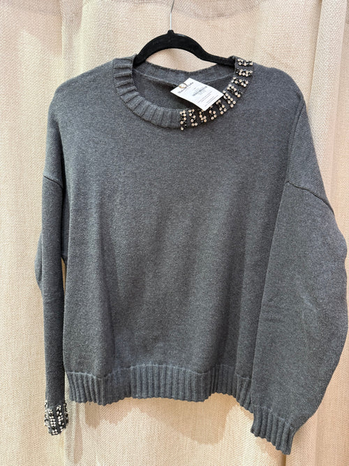 Pull gris laine pinko strass T.M