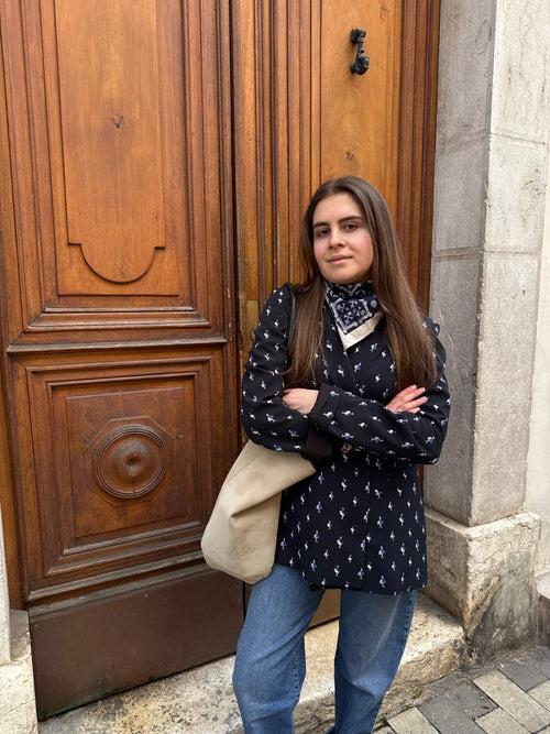 Blouse I.code Beige & noir (motif MC) T.XL