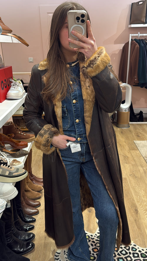 Manteau en lapin et cuir Gérard Darel t.38 réversible