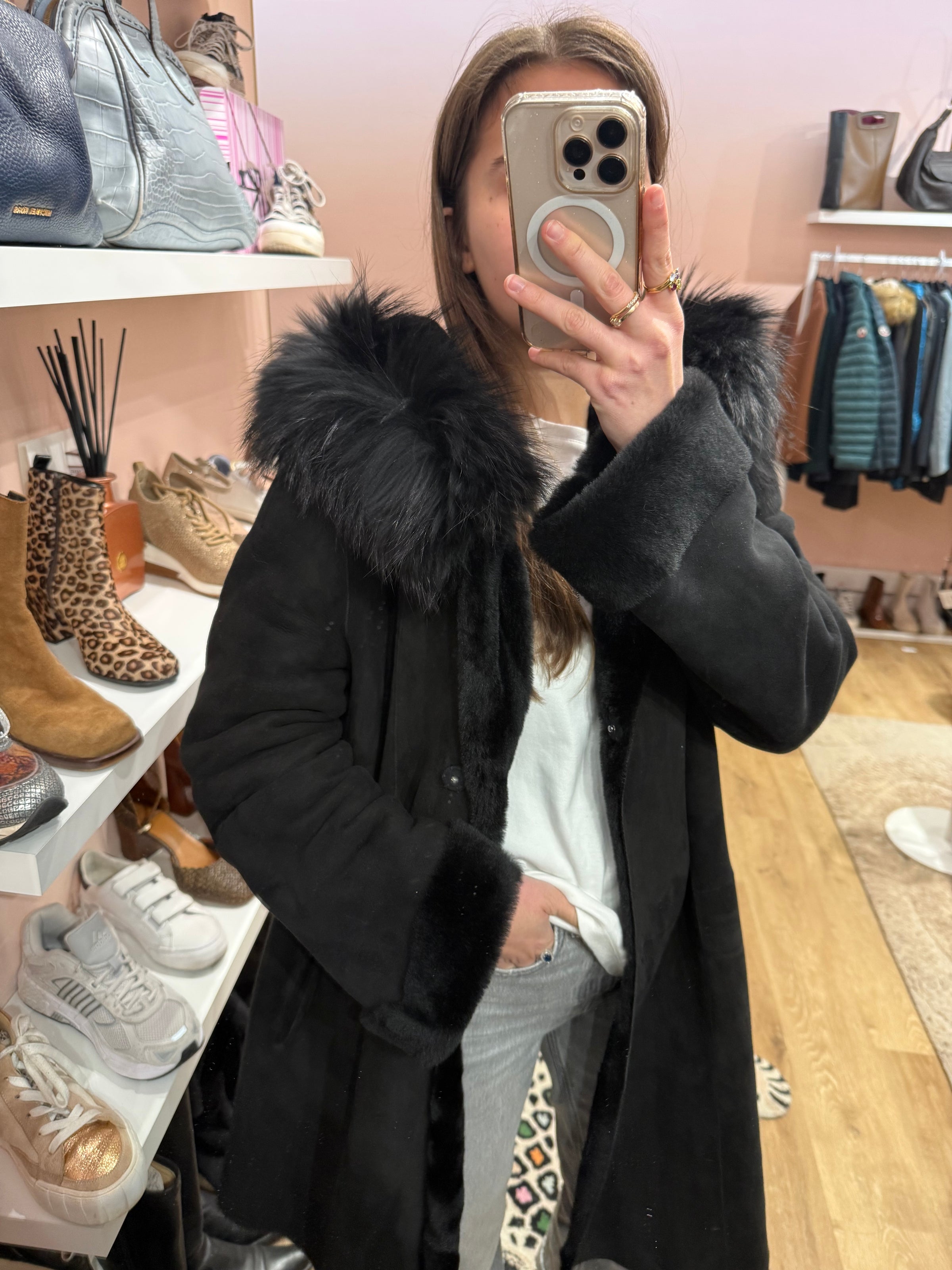 Veste en peau noire longue Rizal T.XL