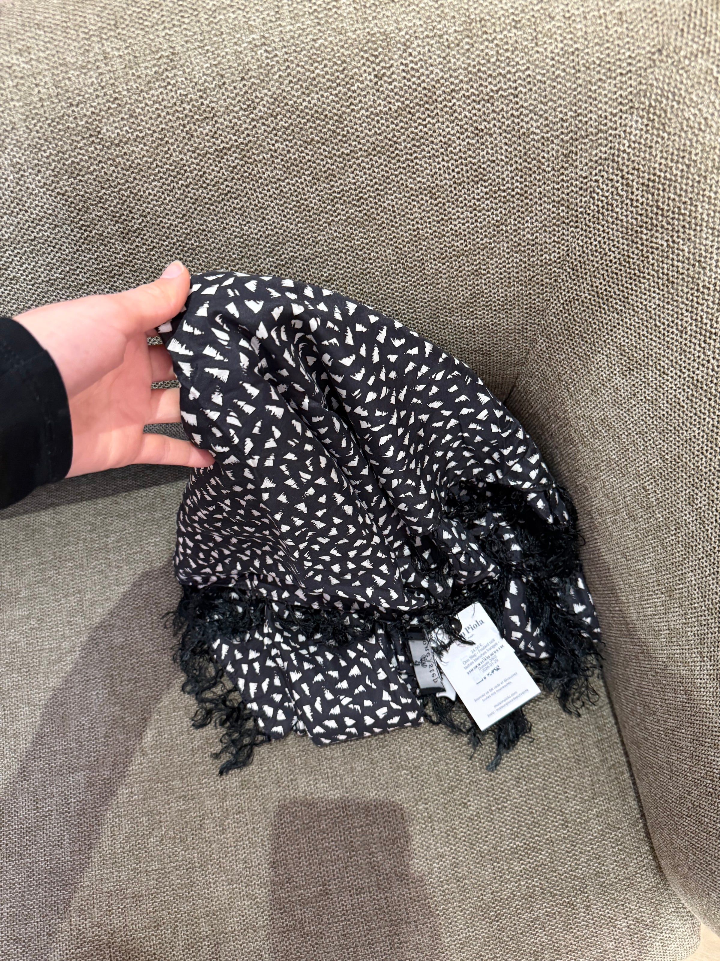 One Step - Foulard noir taches blanches franges - TU