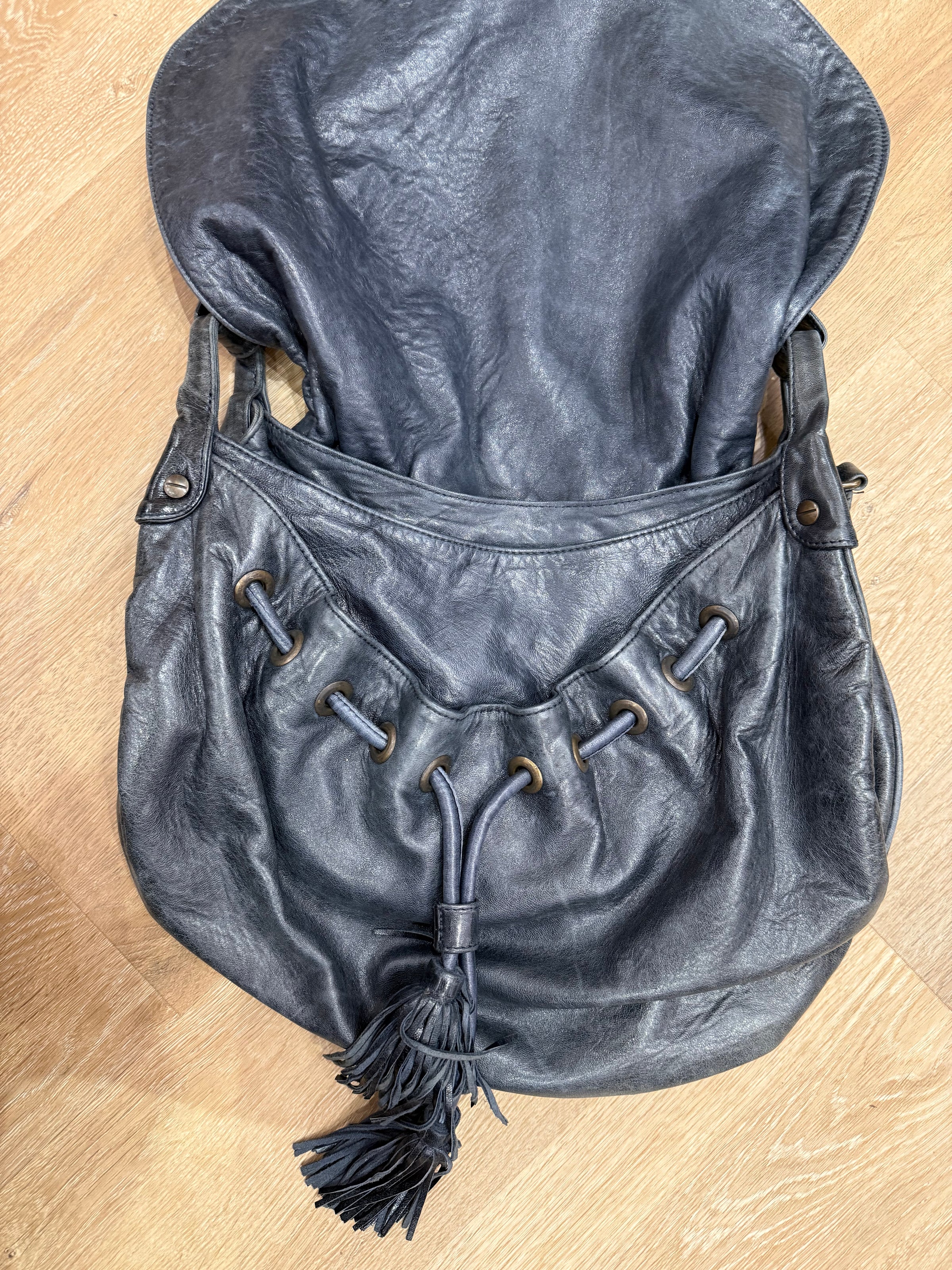 Cuir bleu gris porté plusieurs fois cuir souple