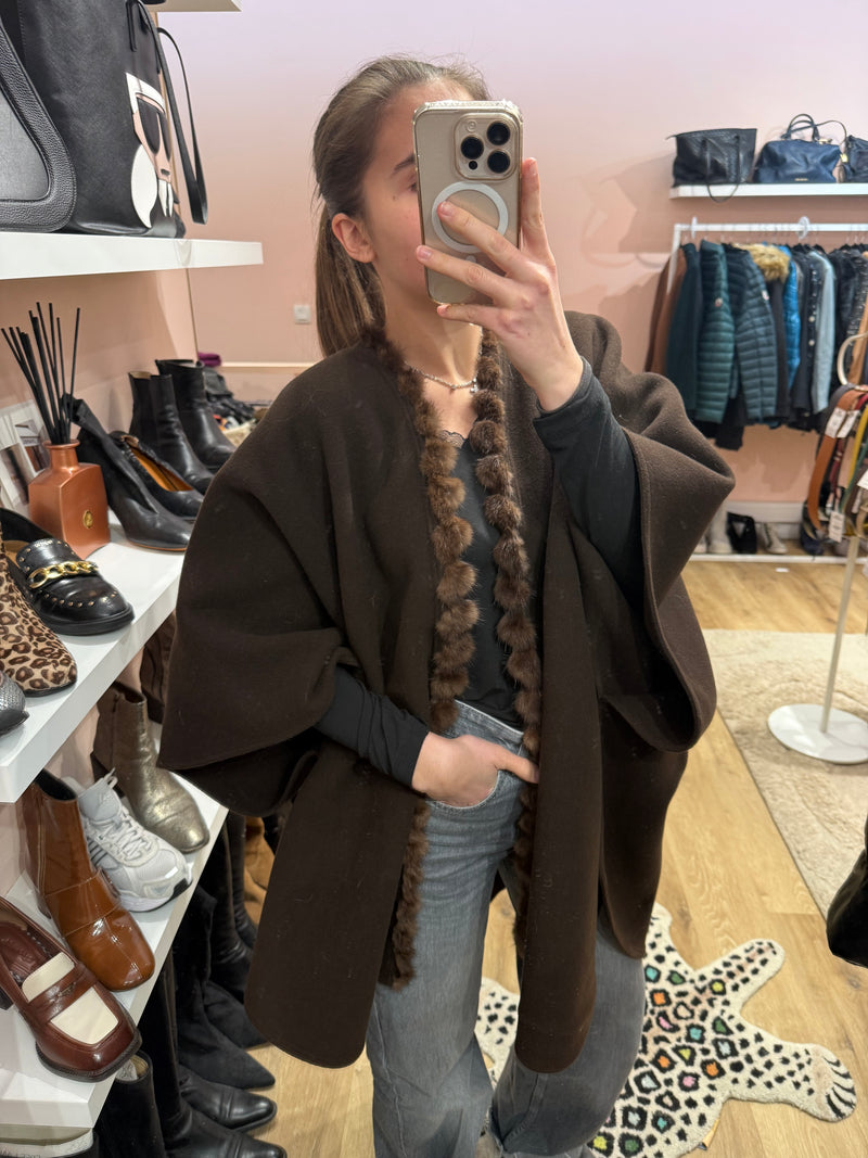Cape marron polaire détail vison T.U