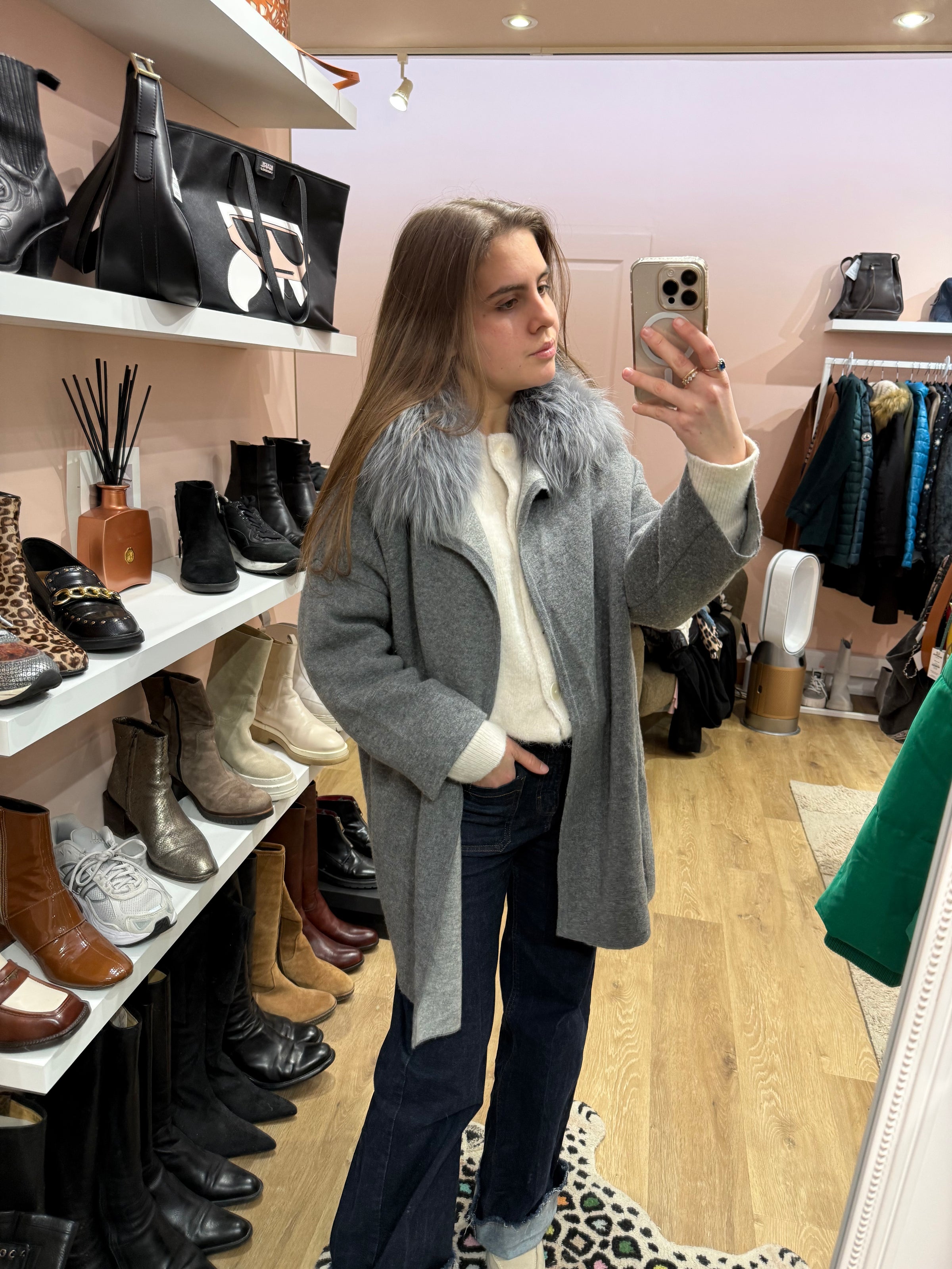 Gilet gris Weill T.44 fourrure / laine / cachemire